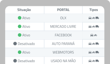 Centralize seu estoque com cadastro completo de veículos e publique anúncios automaticamente nos portais integrados. Além disso, tenha um site responsivo otimizado para conversão, com propostas, simulador de financiamento, filtros, atendimento em tempo real e analytics.