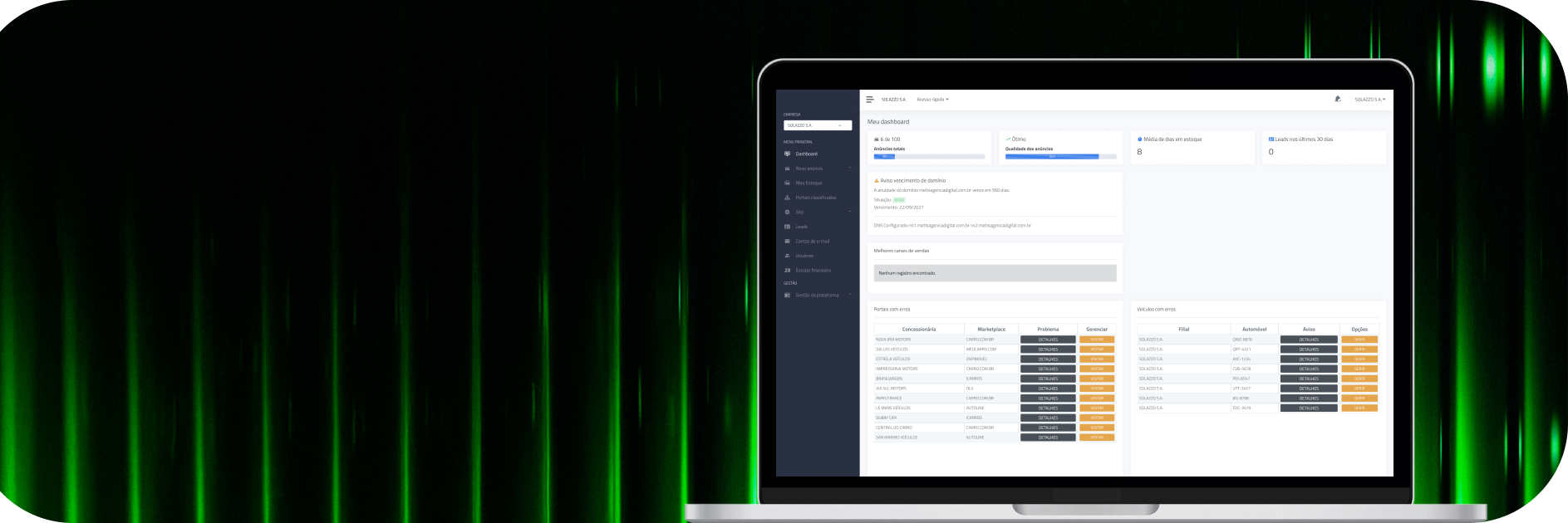 Gestão de estoque, anúncios automatizados e site que gera leads para sua revenda
